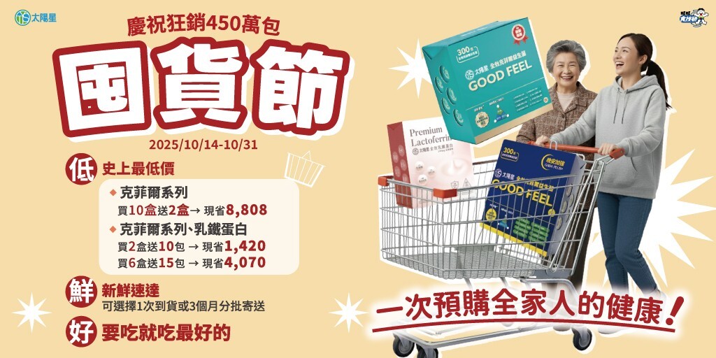 💖乳鐵蛋白囤貨節特惠: 買6盒特惠價再送15包 現省4,070元! | |
