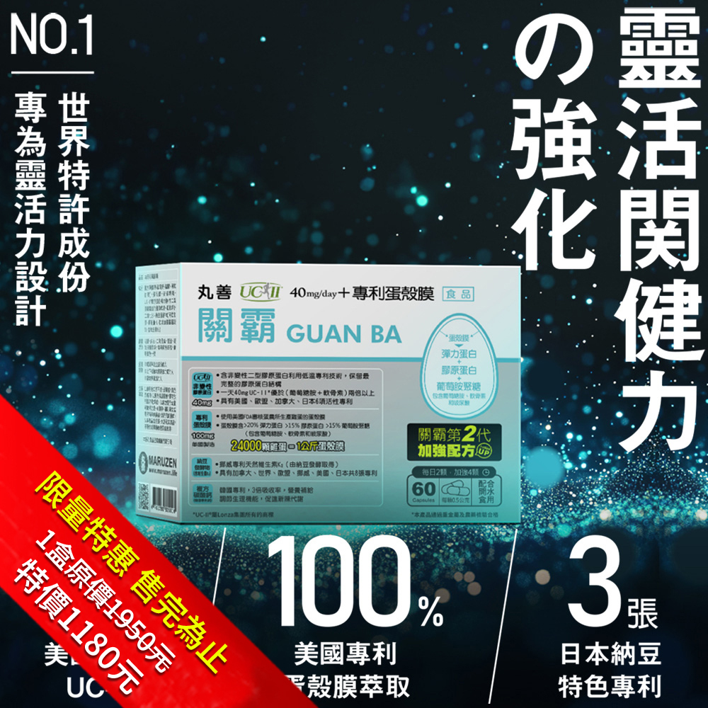 👄維生素B群: 食物型態酵母複合維生素 原價 獨享價850元! | 🔔關霸: 3.4倍關鍵力 超越葡萄糖胺 原價 獨享價1180元! | 💎通霸: 專利納豆發酵物 原價 會員首購價1180元! |
